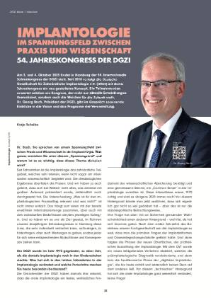 Am 3. und 4. Oktober 2025 findet in Hamburg der 54. Internationale Jahreskongress der DGZI statt. Seit 2018 verfolgt die Deutsche Gesellschaft für Zahnärztliche Implantologie e.V. (DGZI) mit ihrem Jahreskongress ein neu gestaltetes Konzept. Die Teilnehmenden erwartet seitdem ein Kongress, der nicht nur aktuelle Entwicklungen thematisiert, sondern auch die Weichen für die Zukunft stellt. Dr. Georg Bach, Präsident der DGZI, gibt im Gespräch spannende Einblicke in die Vision und das Programm der Veranstaltung.