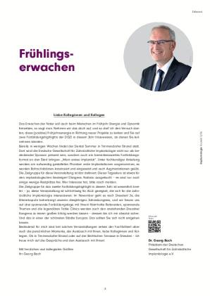 Das Erwachen der Natur soll auch beim Menschen im Frühjahr Energie und Dynamik freisetzen, so sagt man. Nehmen wir das doch auf, und so darf ich den Versuch starten, diese (positive) Frühjahrsenergie in Richtung neuer Projekte zu lenken und Sie auf zwei Fortbildungshighlights der DGZI in diesem Jahr hinzuweisen, an denen Sie teilnehmen könnten...