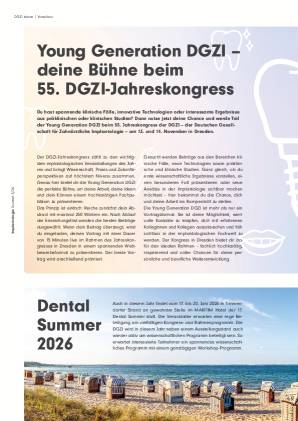 Du hast spannende klinische Fälle, innovative Technologien oder interessante Ergebnisse aus präklinischen oder klinischen Studien? Dann nutze jetzt deine Chance und werde Teil der Young Generation DGZI beim 55. Jahreskongress der DGZI – der Deutschen Gesellschaft für Zahnärztliche Implantologie – am 13. und 14. November in Dresden.
