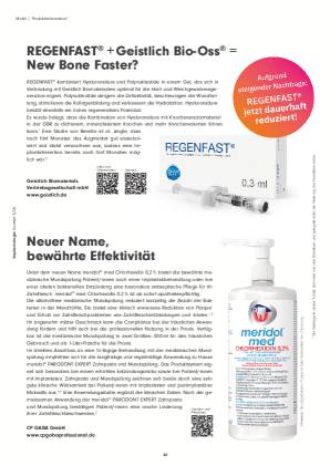 REGENFAST® kombiniert Hyaluronsäure und Polynukleotide in einem Gel, das sich in Verbindung mit Geistlich Biomaterialien optimal für die Hart- und Weichgeweberegeneration eignet. Polynukleotide steigern die Zellaktivität, beschleunigen die Wundheilung, stimulieren die Kollagenbildung und verbessern die Hydratation. Hyaluronsäure besitzt ebenfalls ein hohes regeneratives Potenzial.