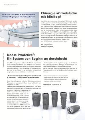 Auch Millimeter machen den Unterschied: NSK hat die bewährten Chirurgie-Winkelstücke für die Implantologie Ti-Max X-SG20L und S-Max SG20 mit Blick auf die Kopfgröße nochmals optimiert. Das Ergebnis ist ein verkleinerter Instrumentenkopf mit einer deutlich verringerten Kopfhöhe...