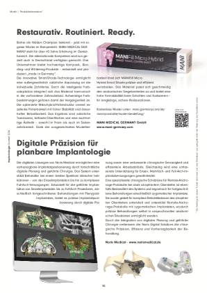 Bisher als Hidden Champion bekannt – jetzt mit eigener Marke im Rampenlicht. MANI MEDICAL GERMANY steht für über 40 Jahre Erfahrung im Dentalbereich. Die internationale Kompetenz wird nun gezielt auch in Deutschland verfügbar gemacht. Das Unternehmen bietet hochwertige Komposit-, Bonding- und Whitening-Produkte – entwickelt und produziert „made in Germany“.
