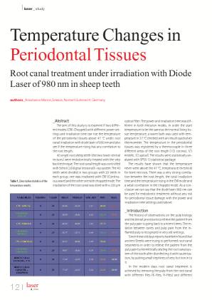 Temperature Changes in Periodontal Tissues - Root canal treatment under irradiation with Diode Laser of 980 nm in sheep teeth