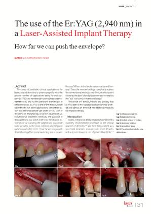 The array of available clinical applications for laser assisted dentistry is growing rapidly, with the greater number of applications being for oral surgery. Er:YAG laser wavelength is considered to be extremely safe, and is the dominant wavelength in dentistry today . Er:YAG is one of the most suitable wavelengths for bone applications. The presentation will demonstrate the use of the Er:YAG laser in the world of implantology, and the advantages vs. conventional treatment methods. The purpose in this paper is to put some order into the chaotic information surrounding the subject and to provide some answers to the most common and frequent questions we often meet: How far we can go with this technology? Is it just a marketing tool or proven therapy? Where is the line between reality and fantasy? Does the new technology completely replace the conventional methods and if not, at which point do we lay the laser s hand piece down and re-employ the ”oldÓ tools and conventional ways? The article will exhibit, beyond any doubts, that Er:YAG laser is very valuable tools and shows promise and safe as an effective new technical modality for implant therapy.