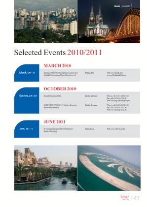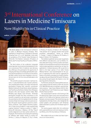 The third edition of the International Conference on Lasers in Medicine Timisoara, Romania, ”New Highlights in Clinical PracticeÓ took place in Timisoara (Romania) from 24th to 26th September 2009 under the presidency of Prof Carmen Todea (Secretary of WFLD-ED), Prof Norbert Gutknecht (President of WFLD), and Prof Jean Paul Rocca (President of WFLD-ED)...
