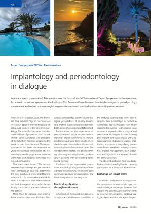 Implant or tooth preservation? This question was the focus of the 34th International Expert Symposium in Fuerteventura. For a week, renowned speakers at the Robinson Club Esquinzo Playa discussed how implantology and periodontology complement each other in a meaningful way—evidence-based, practical and consistently patient-centred.