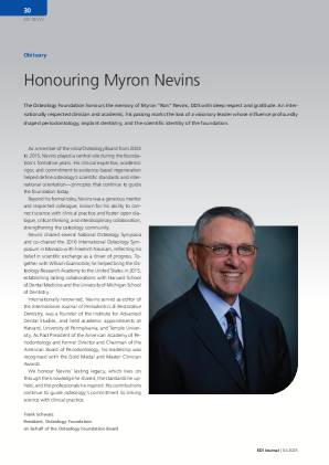 The Osteology Foundation honours the memory of Myron “Ron” Nevins, DDS with deep respect and gratitude. An internationally respected clinician and academic, his passing marks the loss of a visionary leader whose influence profoundly shaped periodontology, implant dentistry, and the scientific identity of the foundation.