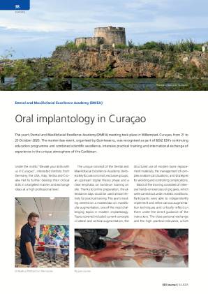This year’s Dental and Maxillofacial Excellence Academy (DMEA) meeting took place in Willemstad, Curaçao, from 21 to 23 October 2025. The masterclass event, organised by Quintessenz, was recognised as part of BDIZ EDI’s continuing education programme and combined scientific excellence, intensive practical training and international exchange of experience in the unique atmosphere of the Caribbean.
