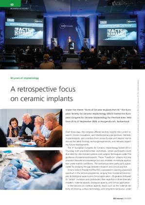 Under the theme “Facts of Ceramic Implants Part III,” the European Society for Ceramic Implantology (ESCI) hosted the European Congress for Ceramic Implantology for the third time, held from 25 to 27 September 2025, in Horgen/Zurich, Switzerland.