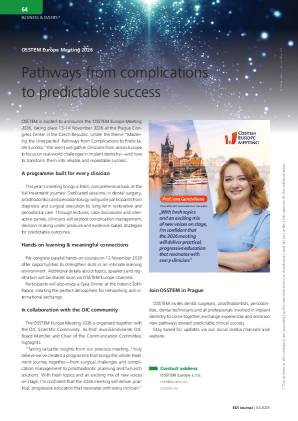 OSSTEM is excited to announce the OSSTEM Europe Meeting 2026, taking place 13–14 November 2026 at the Prague Congress Center in the Czech Republic. Under the theme “Mastering the Unexpected: Pathways from Complications to Predictable Success,” the event will gather clinicians from across Europe to focus on real-world challenges in implant dentistry—and how to transform them into reliable and repeatable success...